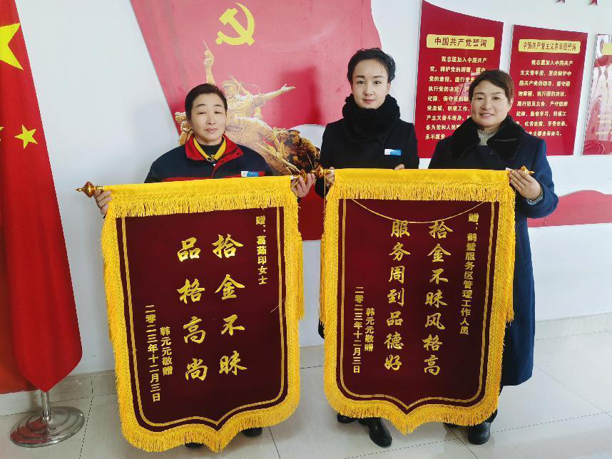 兩面錦旗 鶴壁服務(wù)區(qū)員工拾金不昧獲司乘“雙倍”點贊!