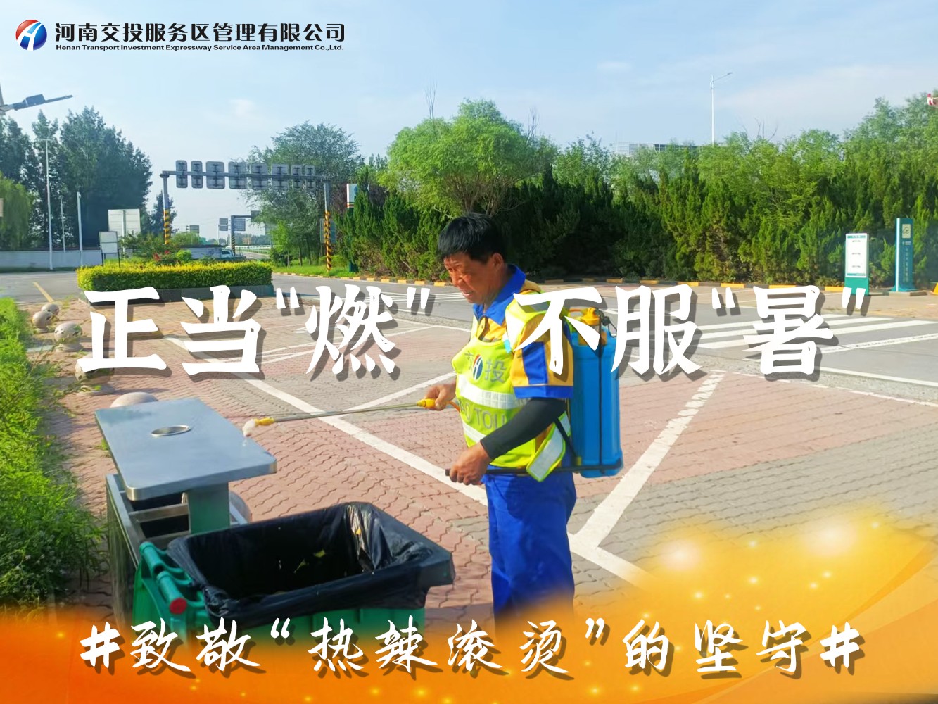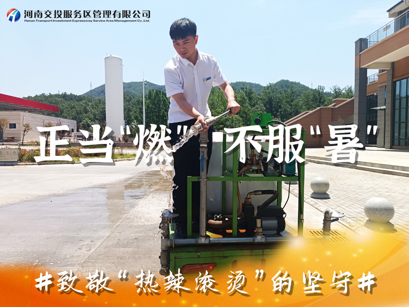 近日,滾滾熱浪席卷著中原大地,我省持續(xù)出現(xiàn)38℃以上高溫極端天氣,地表溫度直逼50℃,在這樣惡劣的環(huán)境下,一場(chǎng)時(shí)間與高溫的較量正在公司服務(wù)區(qū)上演,服務(wù)區(qū)廣大一線員工用汗水詮釋著服務(wù)初心,用行動(dòng)書(shū)寫(xiě)責(zé)任與擔(dān)當(dāng),以實(shí)際行動(dòng)為司乘人員平安健康出行保駕護(hù)航。